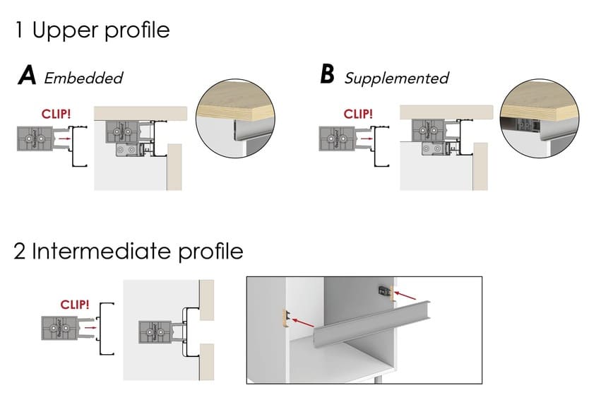 This Gola Profile remains concealed and facilitates the opening of fronts from the inner part