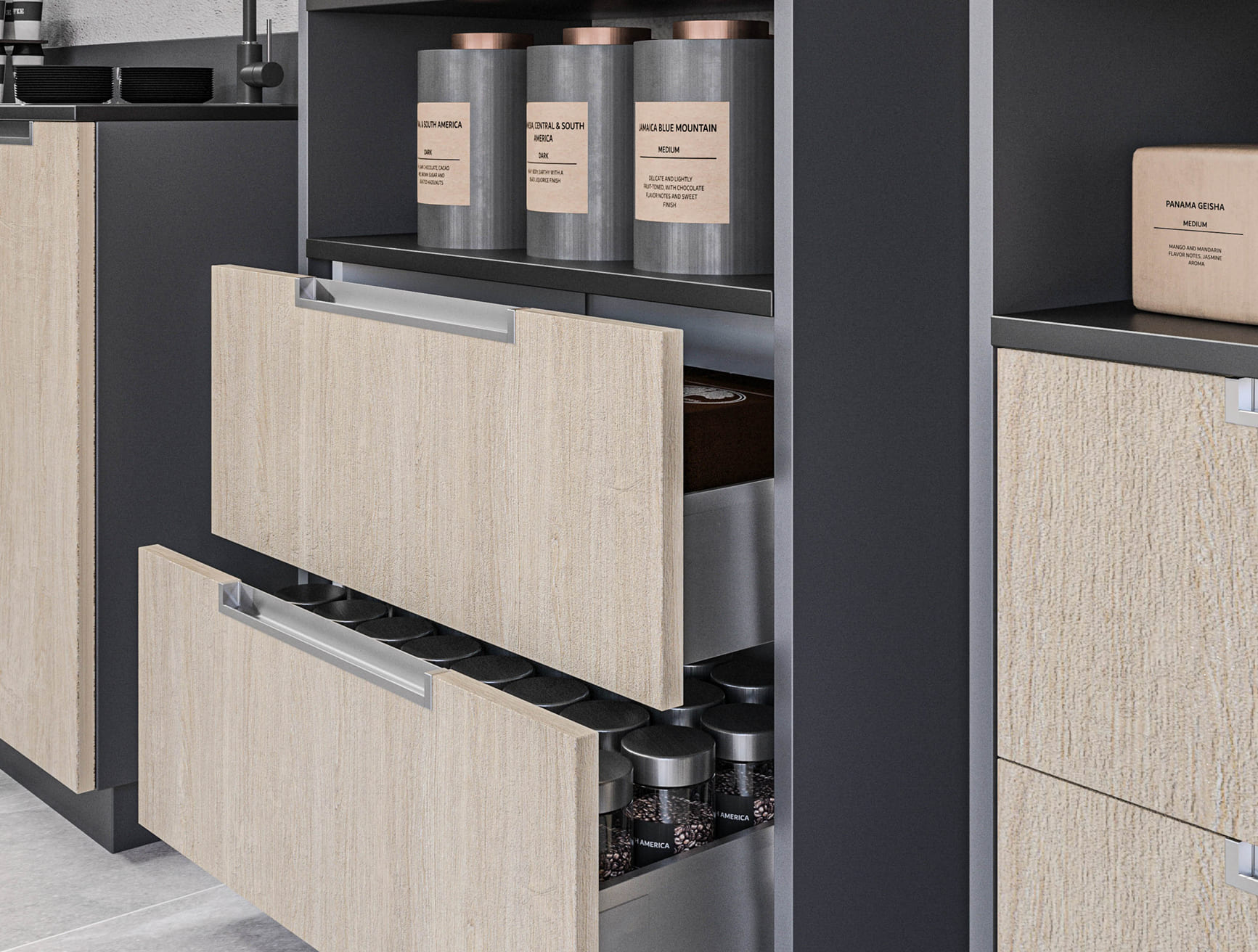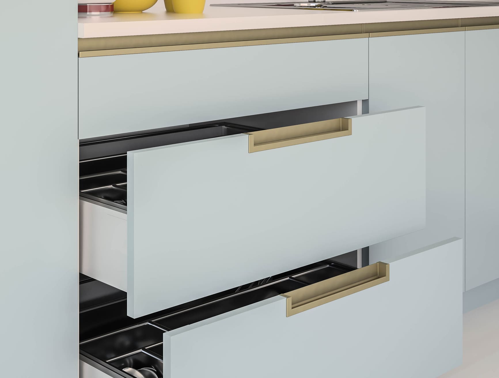 Syma32 Integrado Total es un tirador completamente integrado en puertas y frentes de cajón que consigue una apertura cómoda y una estética minimalista.