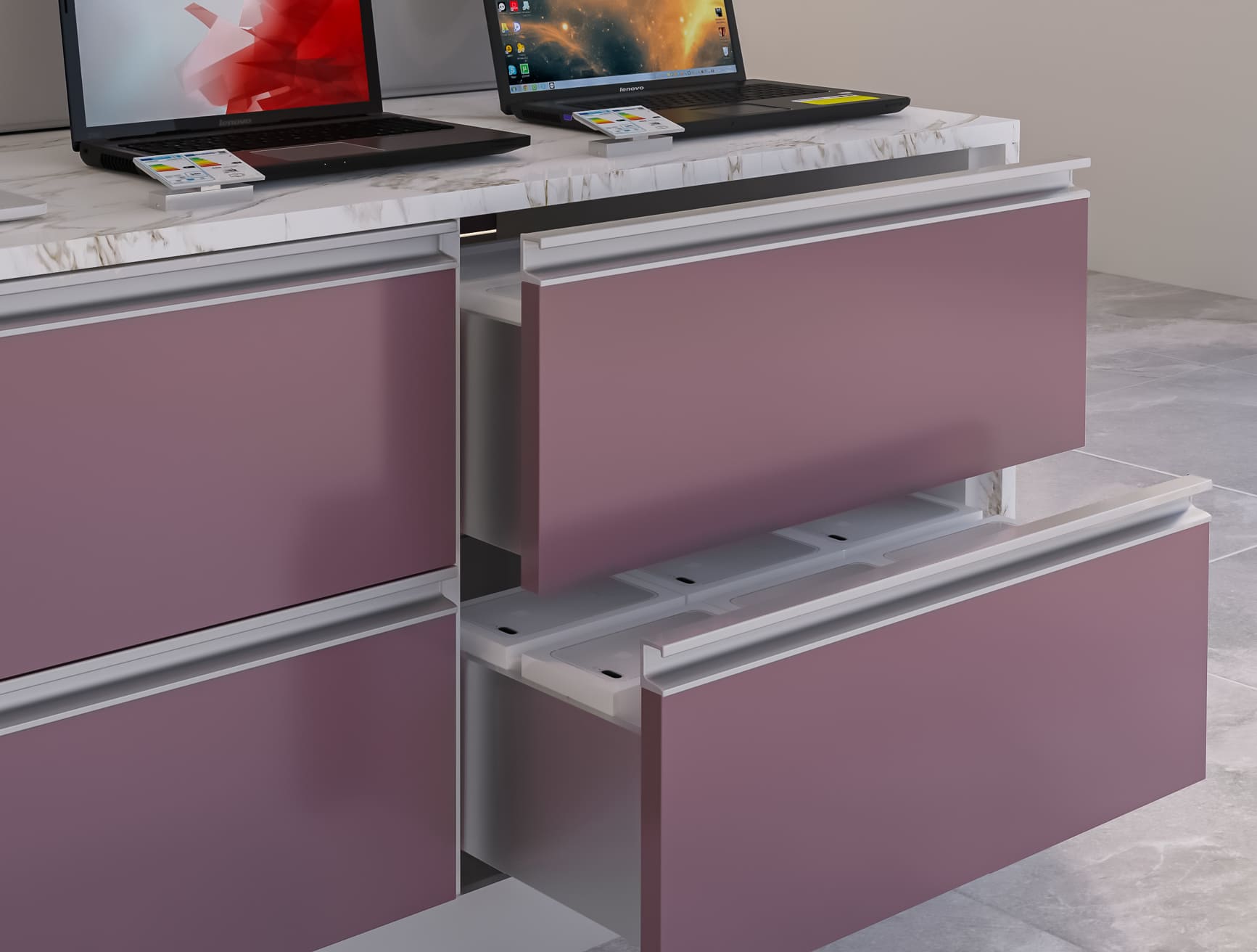 Su instalación mediante el Clip-System Rincomatic evita las mecanizaciones del mueble.