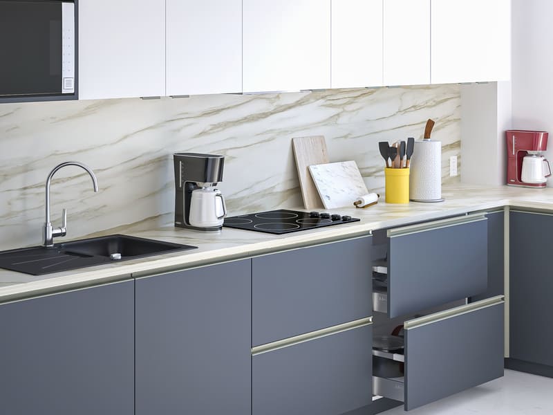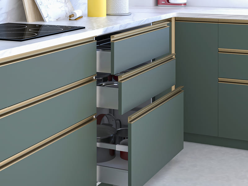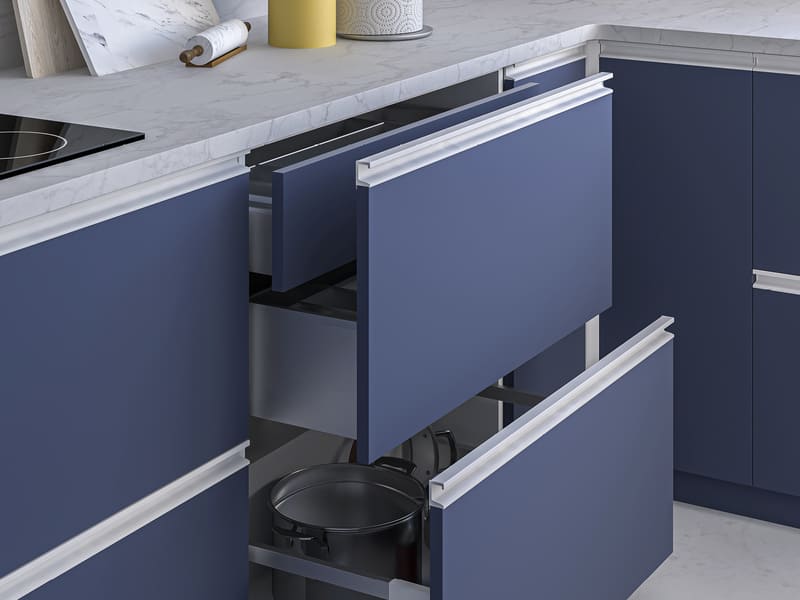 El perfil Gola permanece oculto facilitando la apertura del frente desde la parte inferior del mismo.
