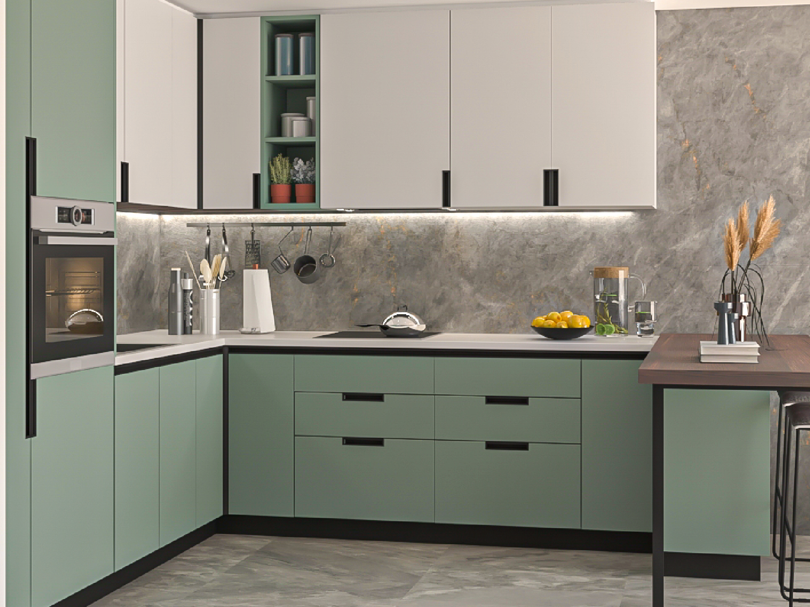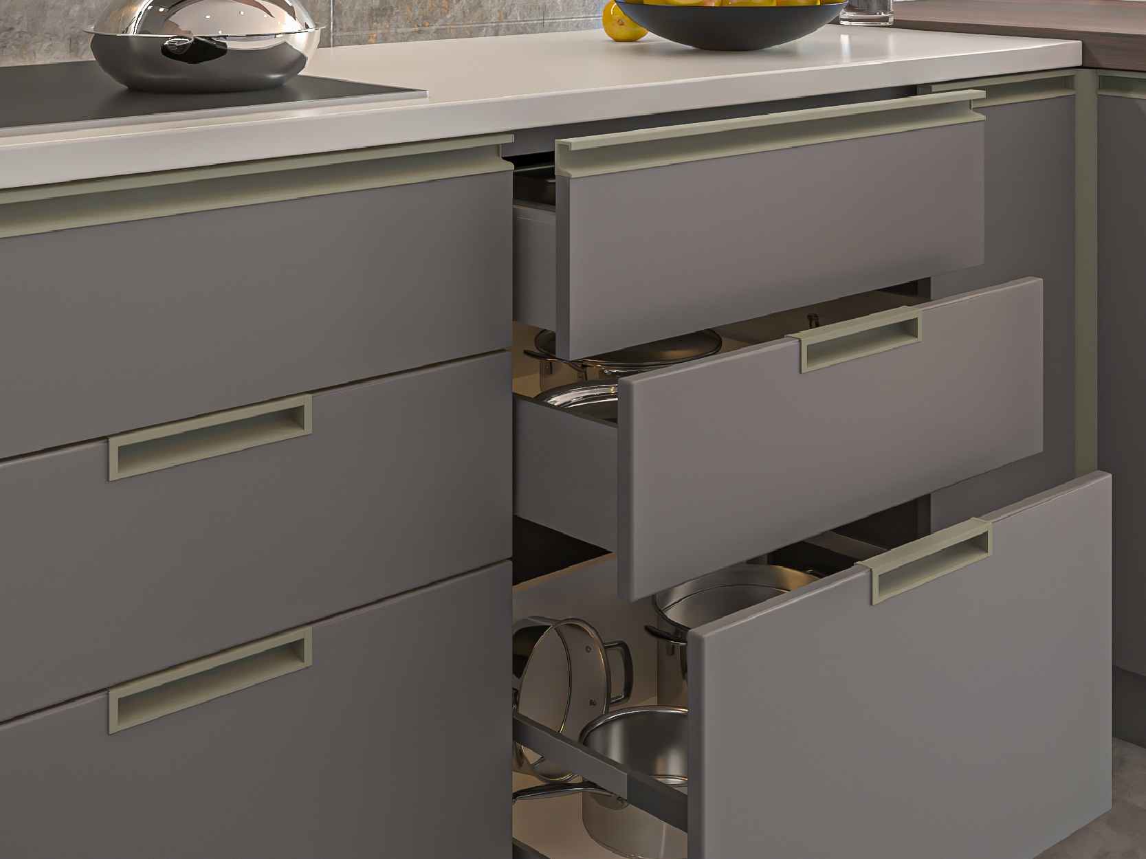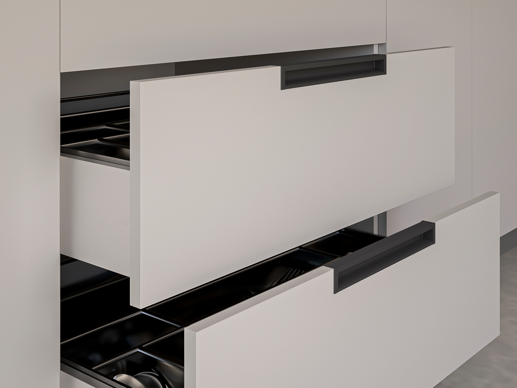 El perfil Gola permanece oculto facilitando la apertura del frente desde la parte inferior del mismo.