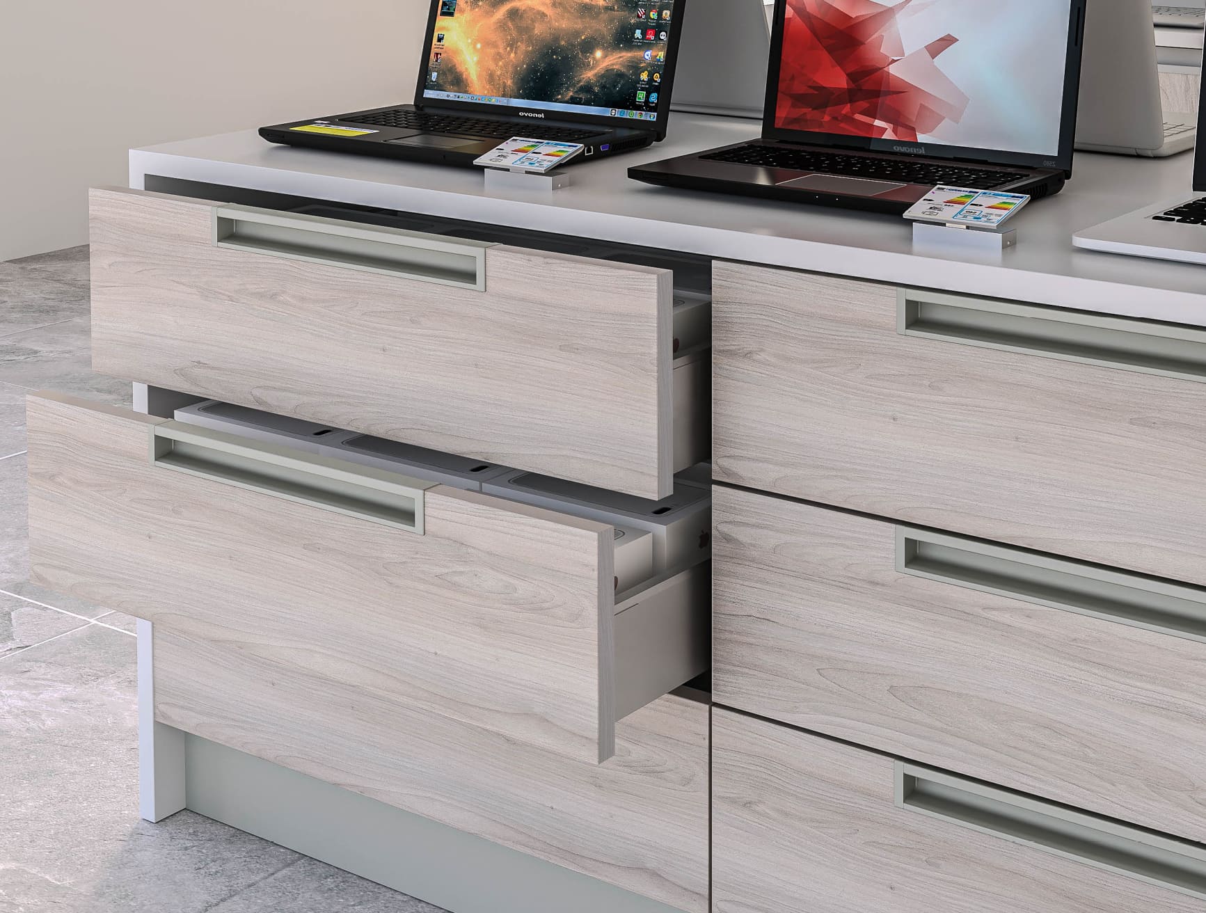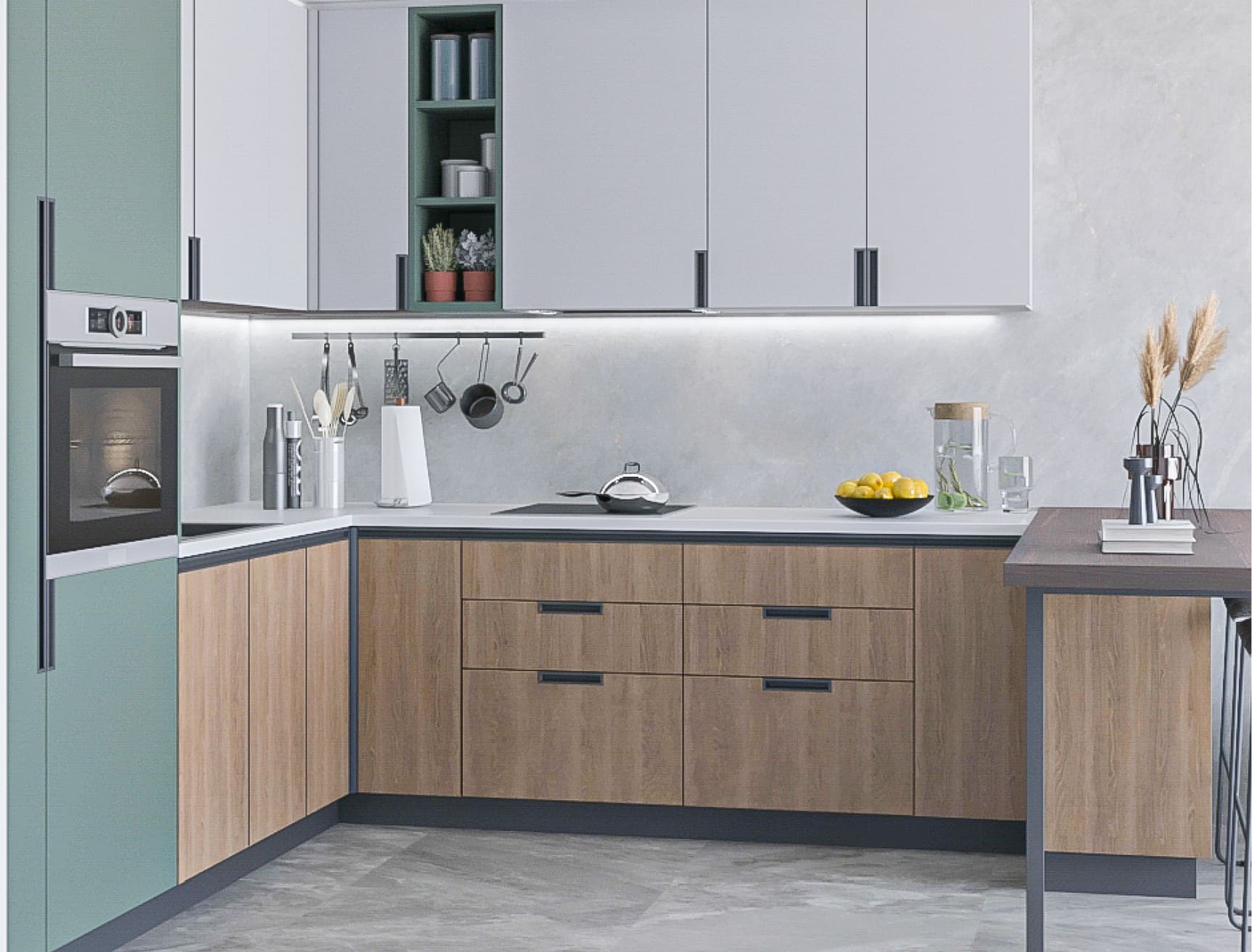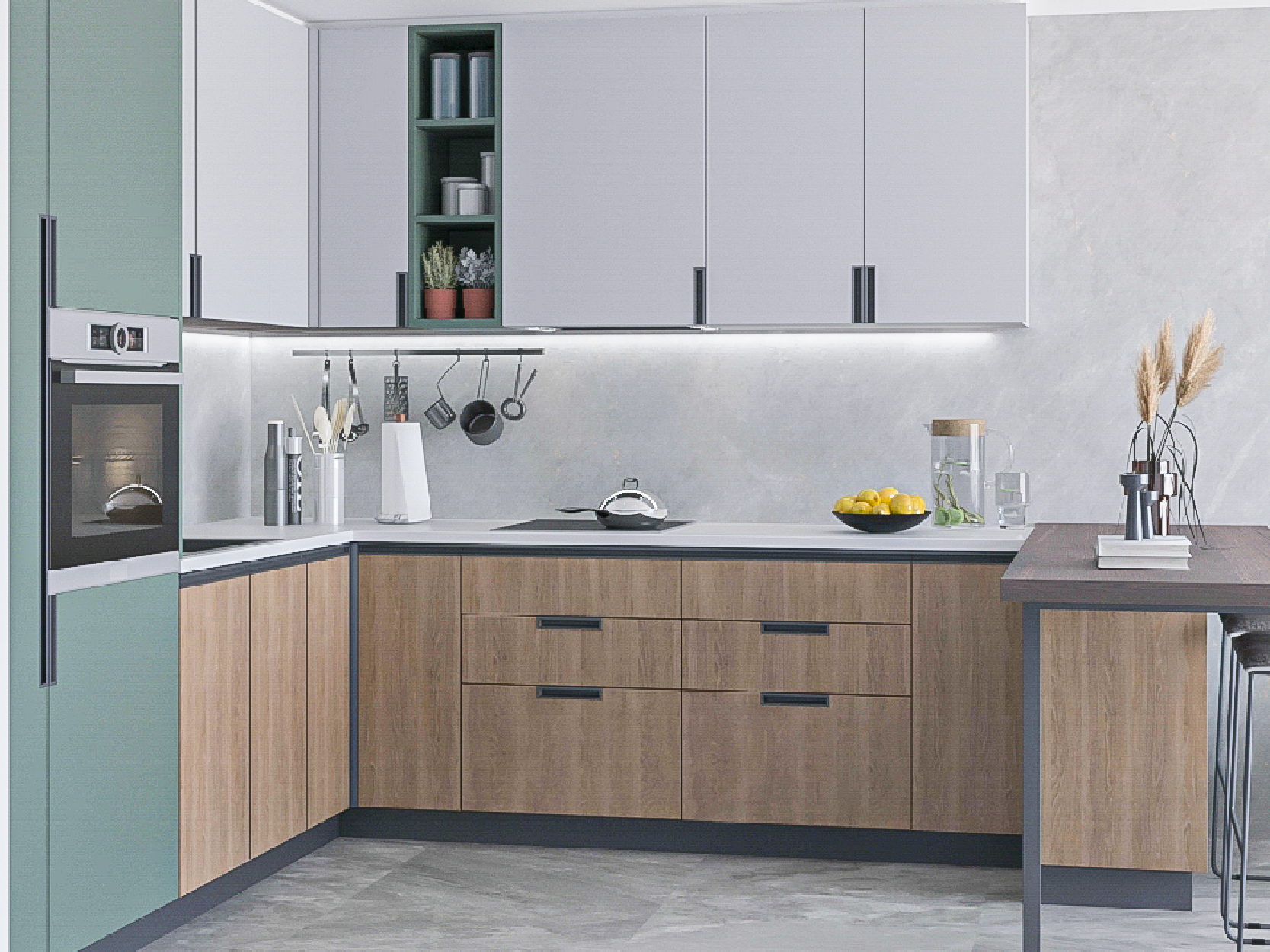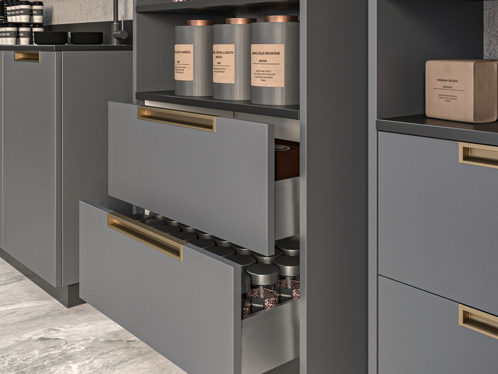 El perfil Gola permanece oculto facilitando la apertura del frente desde la parte inferior del mismo.