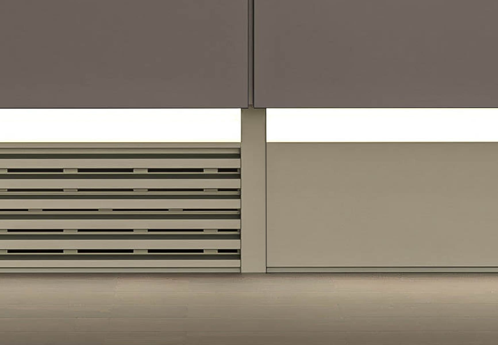 Permite una respiración bidireccional en los muebles de cocina, pues es permeable al aire. Facilita tanto la entrada para la refrigeración de electrodomésticos como la salida del aire de recirculación de las placas de inducción.